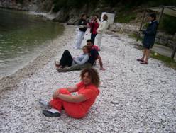 Alla Vista di un paesaggio cosi bello visto dal mare non resistiamo ed io insieme al mio equipaggio al completo, composto da Laura L., Laura C. Gianfranco e Claudia sbarchiamo a remi con il canotto