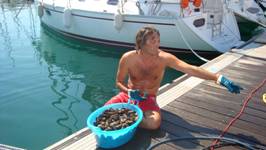Ci svegliamo con poca voglia di partire, il posto è bello, ormai gli equipaggi sono affiatati, ma il Capitano ci convince a risalire in barca perché ha dato inizio alla caccia, un secchio di cozze e un fantastico vassoio di ostriche, dobbiamo cucinare…